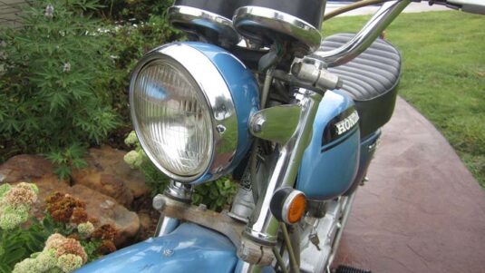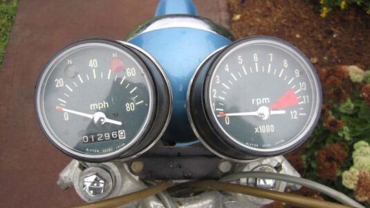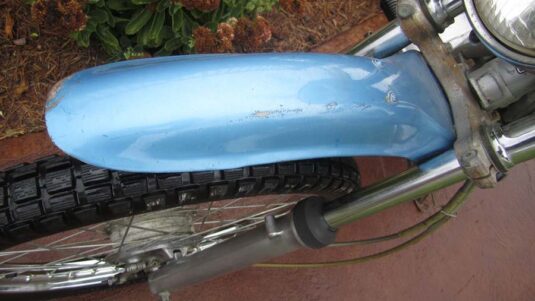 Original survivor bike with low-low miles. Original seat and paint except on side covers. Runs well and lights function except for low-beam. Original tires and it doesn’t look to have been touched otherwise.