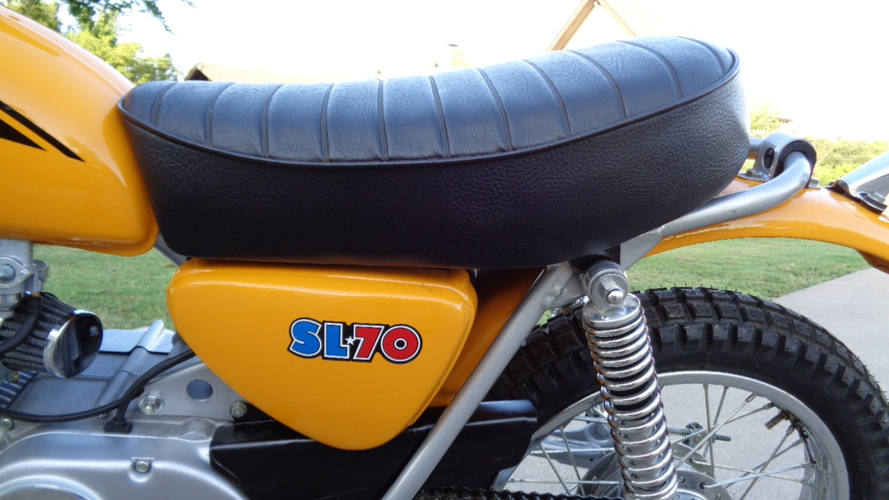 If you want the fastest SL70 in your neighborhood, then look no further. Beautifully restored 1971 Honda SL70 K0 in Summer Yellow with Hot Rod 117cc Engine. Features a big head, big valve, hot cam and big carburetor. Period correct Torque Engineering pipe and all the details polished, chromed, zinc’d and powder coated. Gearing is 15t Front and 34t Rear and it will scream.