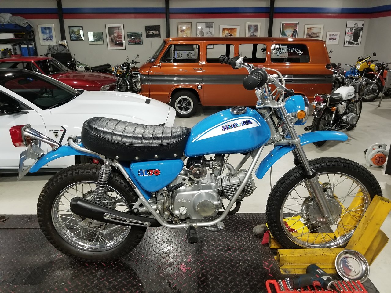 Nicely restored Aquarius Blue SL70 K0 with a lot of polish and chrome work completed. bike runs well, lights work etc. Bill of Sale only on this one.