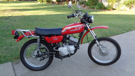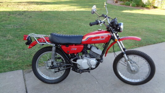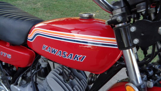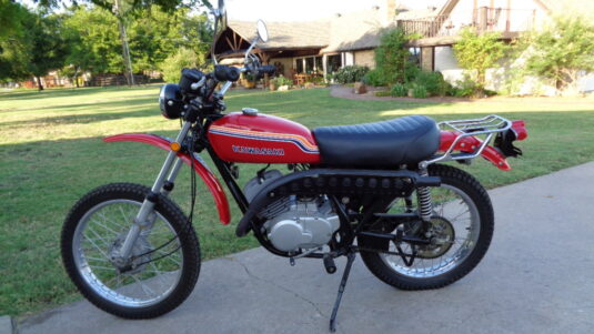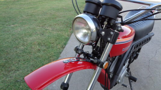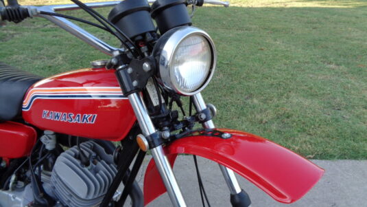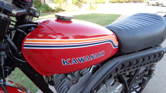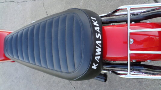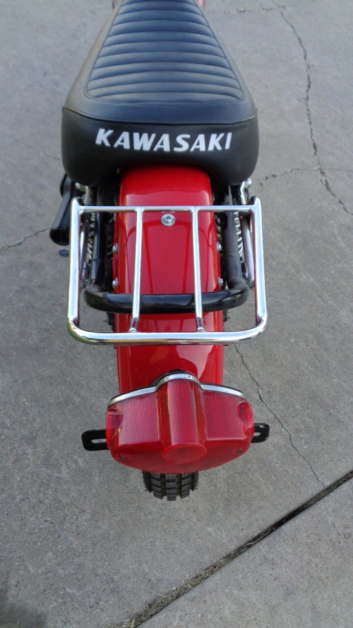 1972 Kawasaki F7 21.5hp which was crazy for a small displacement bike at the time. Nice light restoration on a very nice original bike. New engine components, fresh Marblesmotors paint & Decals, many new parts and a real strong runner. Rims/Hubs/Spokes are original. Original luggage rack. Hard to find in this condition. Title in hand.
