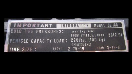 Honda SL100 K0 / K1 / K2 / K3 Tire Pressure Decal