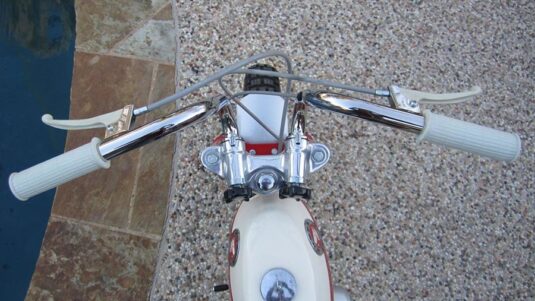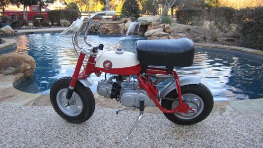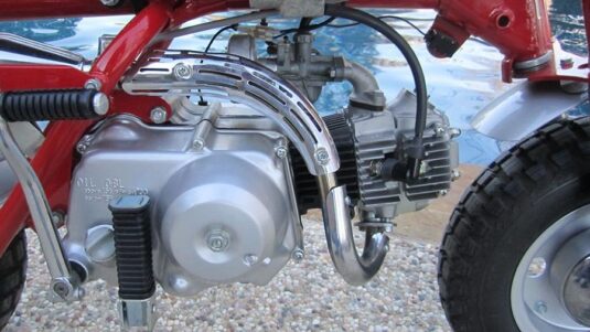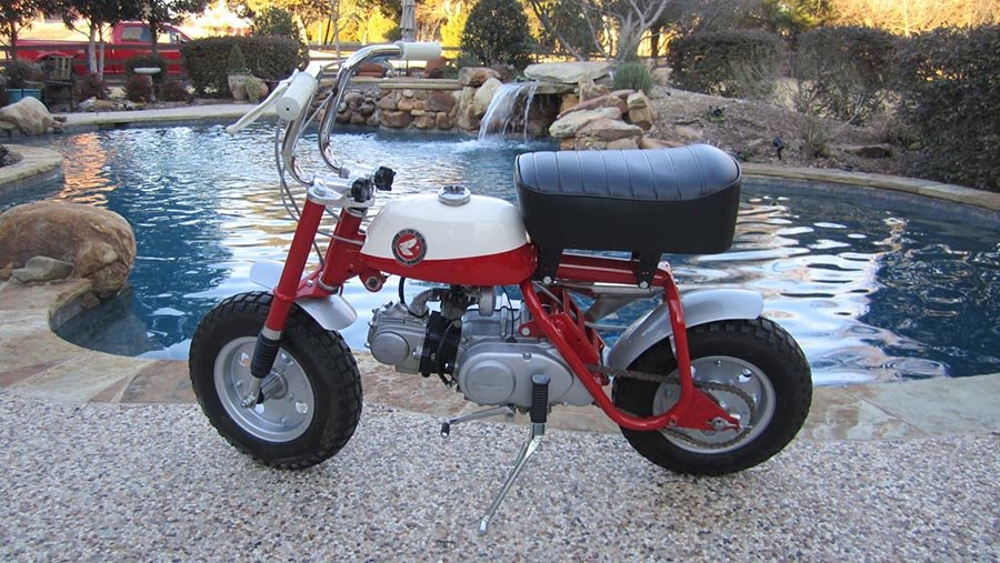 First year Mini-Trail 50 with tons of correct parts.  Correct K0 parts include; ivory grips and levers, correct fuel cap, seat, small tab rear fender, non-patent muffler, correct front forks with only one hole, correct K0 carb with knurled drain knob and drain fixture made into bowl and proper K0 ignition switch.  Runs fantastic and looks better.  Perfect Scarlet Red & Ivory Paint.